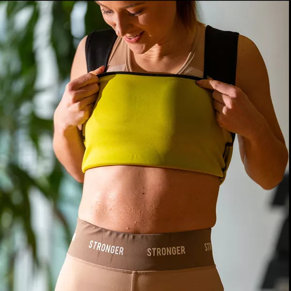 Opnå en slankere silhuet med termo-vesten og termo-capribukserne. De strammer effektivt maven og skjuler små fedtdepoter for en perfekt figur.