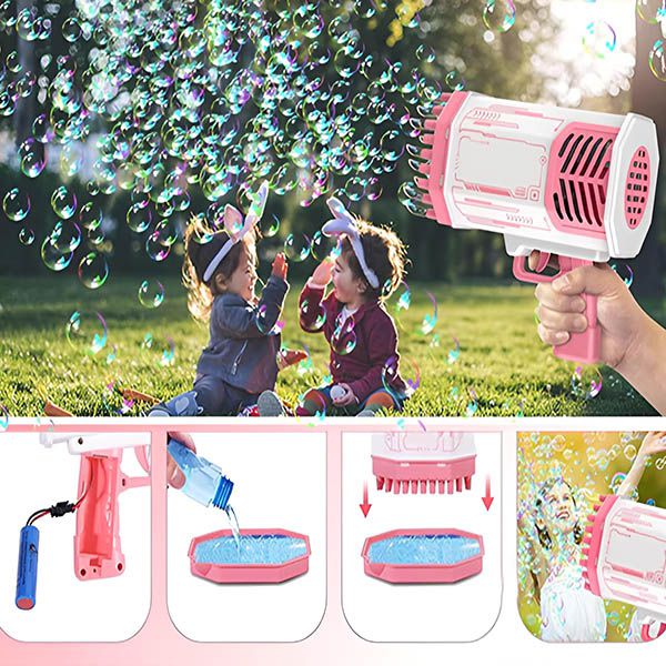 Gør dine arrangementer endnu mere magiske med BUBBLEPUFF 69-huls LED sæbeboblepistol, designet til at skabe en fortryllende strøm af sæbebobler, der begejstrer både børn og voksne.
