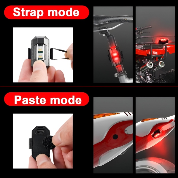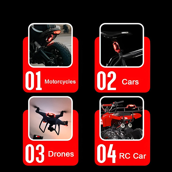 Disse lys er utroligt alsidige og passer til biler, motorcykler, cykler og droner. Vælg mellem velcro- eller gummiringmontering for en sikker og enkel fastgørelse. Ingen værktøj eller professionel hjælp er nødvendig.