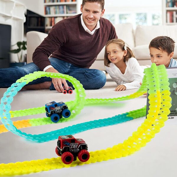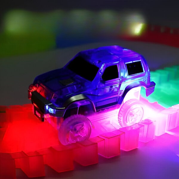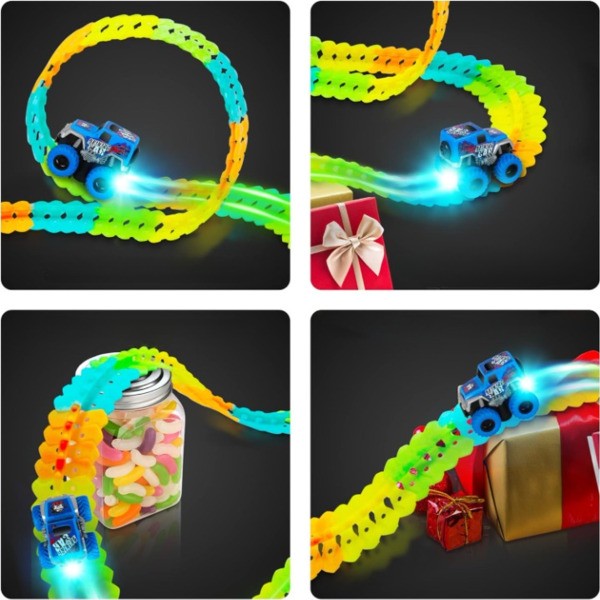 Se hvordan banen og bilen lyser i mørket og skaber et fascinerende lysshow, der gør legen endnu mere spændende.