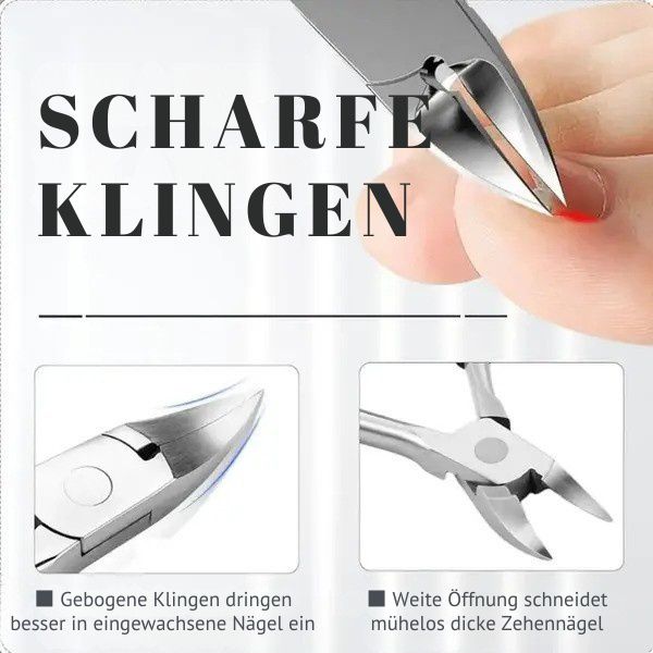 Særligt udviklet til fortykkede og nedgroede negle giver værktøjerne i dette sæt den nødvendige styrke og præcision til krævende neglepleje uden ubehag eller risiko for skader.