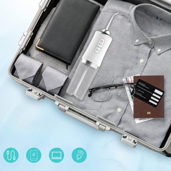Med en vægt på kun 350 g passer denne bærbare tandrenser nemt i enhver rejsetaske.